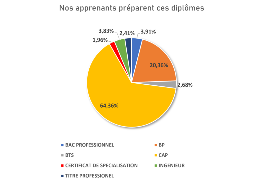 59% des apprenants diplômés signent un contrat de travail (CDD, CDI, Intérim) à l’issue de leur formation initiale.